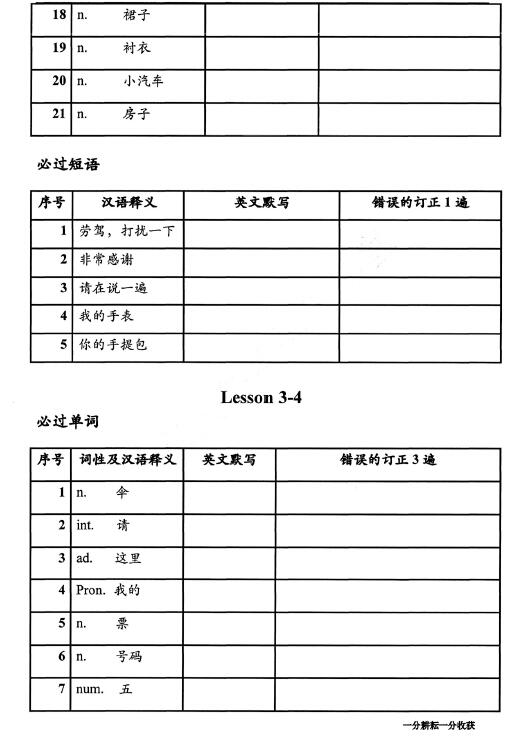 新概念英语一全册默写-单词及词组